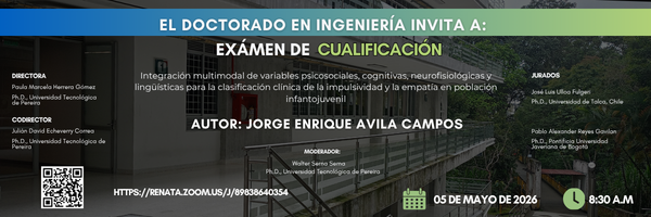 El Doctorado en Ingeniería tiene el gusto de invitarlo en calidad de moderador a la prueba de cualificación de la propuesta de tesis doctoral: “Integración multimodal de variables psicosociales, cognitivas, neurofisiológicas y lingüísticas para […]