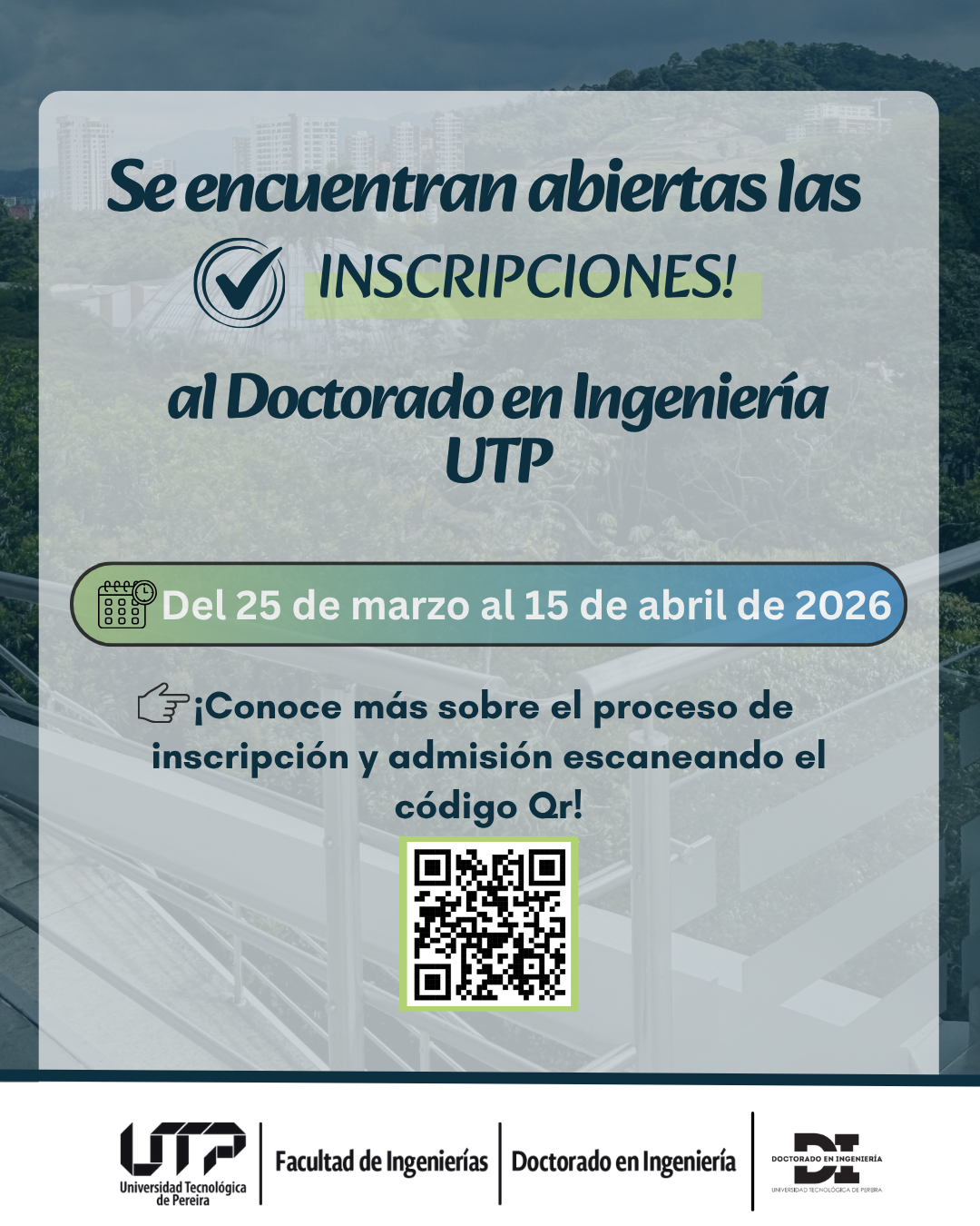 El doctorado en ingenieria informa la apertura de inscripciones para profesionales interesados en fortalecer su formación investigativa y académica.