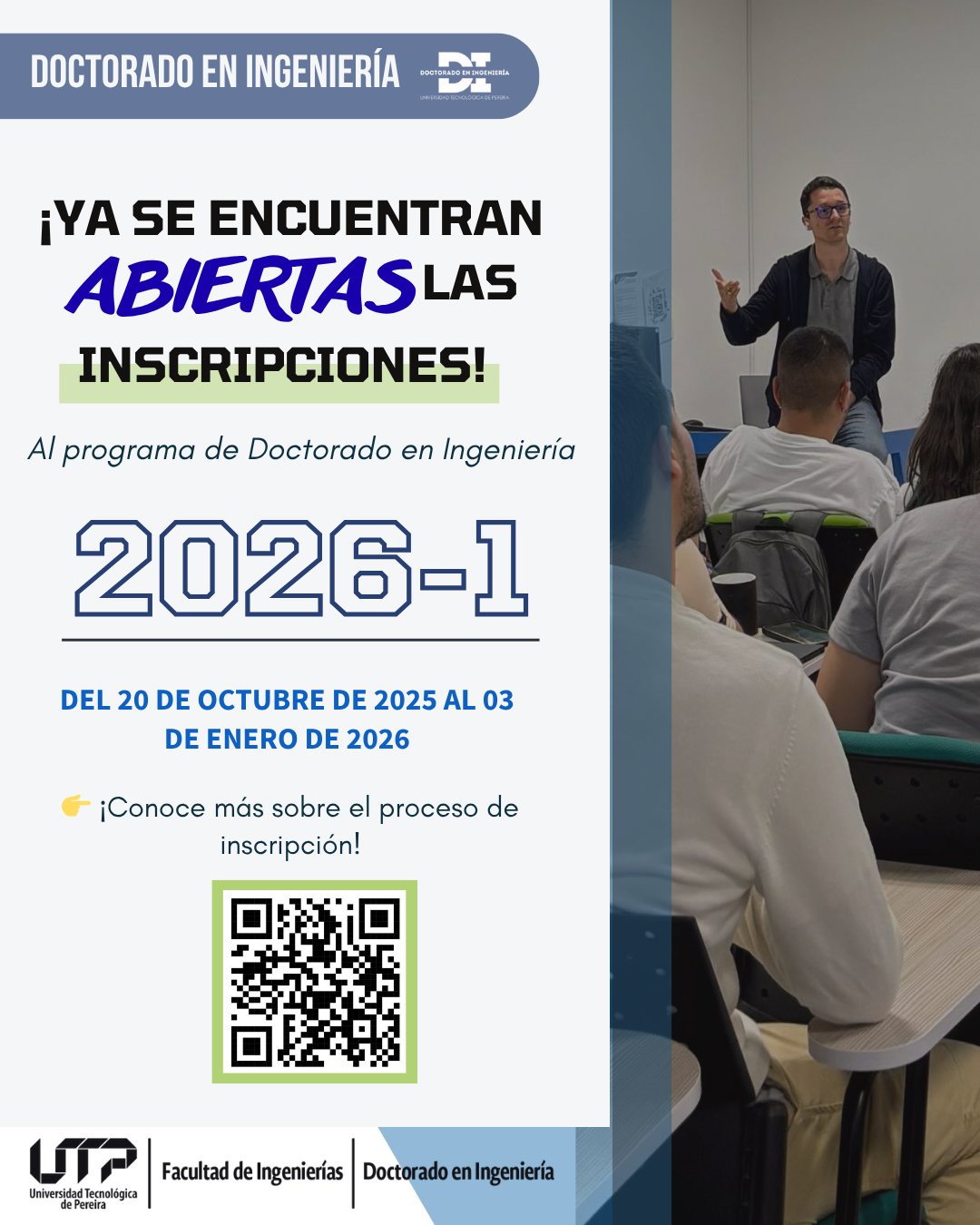 Ya puedes inscribirte en el Doctorado en Ingeniería UTP para el periodo 2026-1.